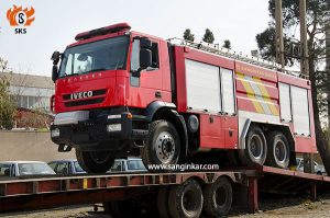 Loading and shipping a heavy duty fire truck Iveco trucker