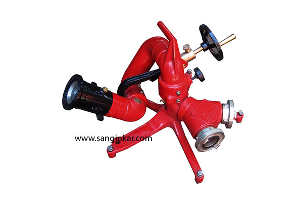 Master Stream: Pre-piped single waterway Aluminum monitor flows 3000LPM with minimum friction loss. The Sangin Kar Sanat Monitor is designed for 360 degree rotation with positive lock and is built with stainless steel ball bearings at each swivel joint. Equipped with venturi for direct foam suction with adjustable valve.